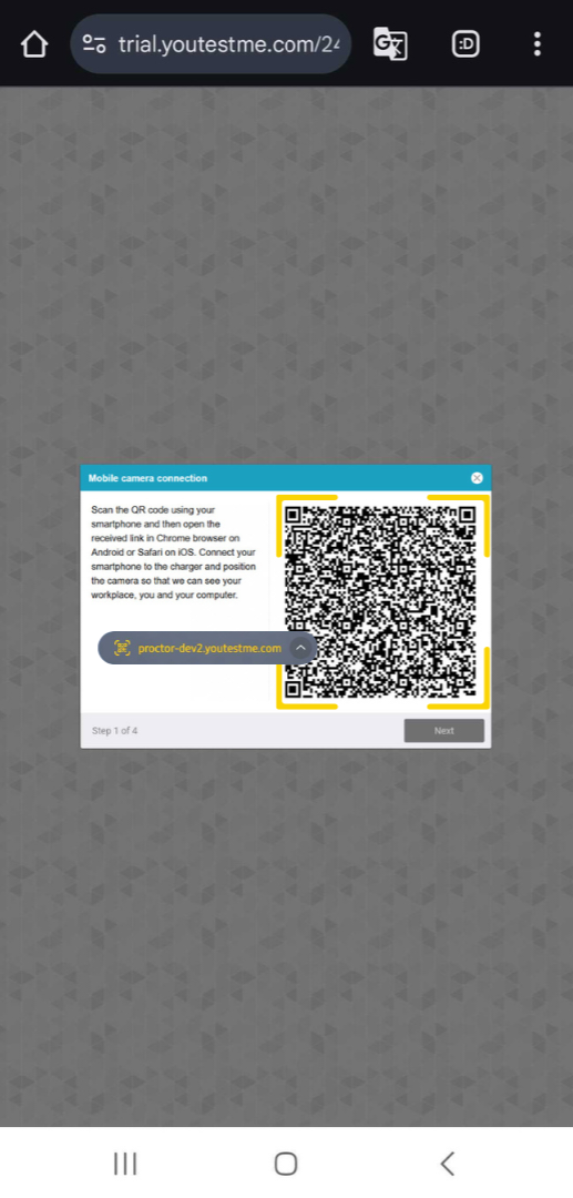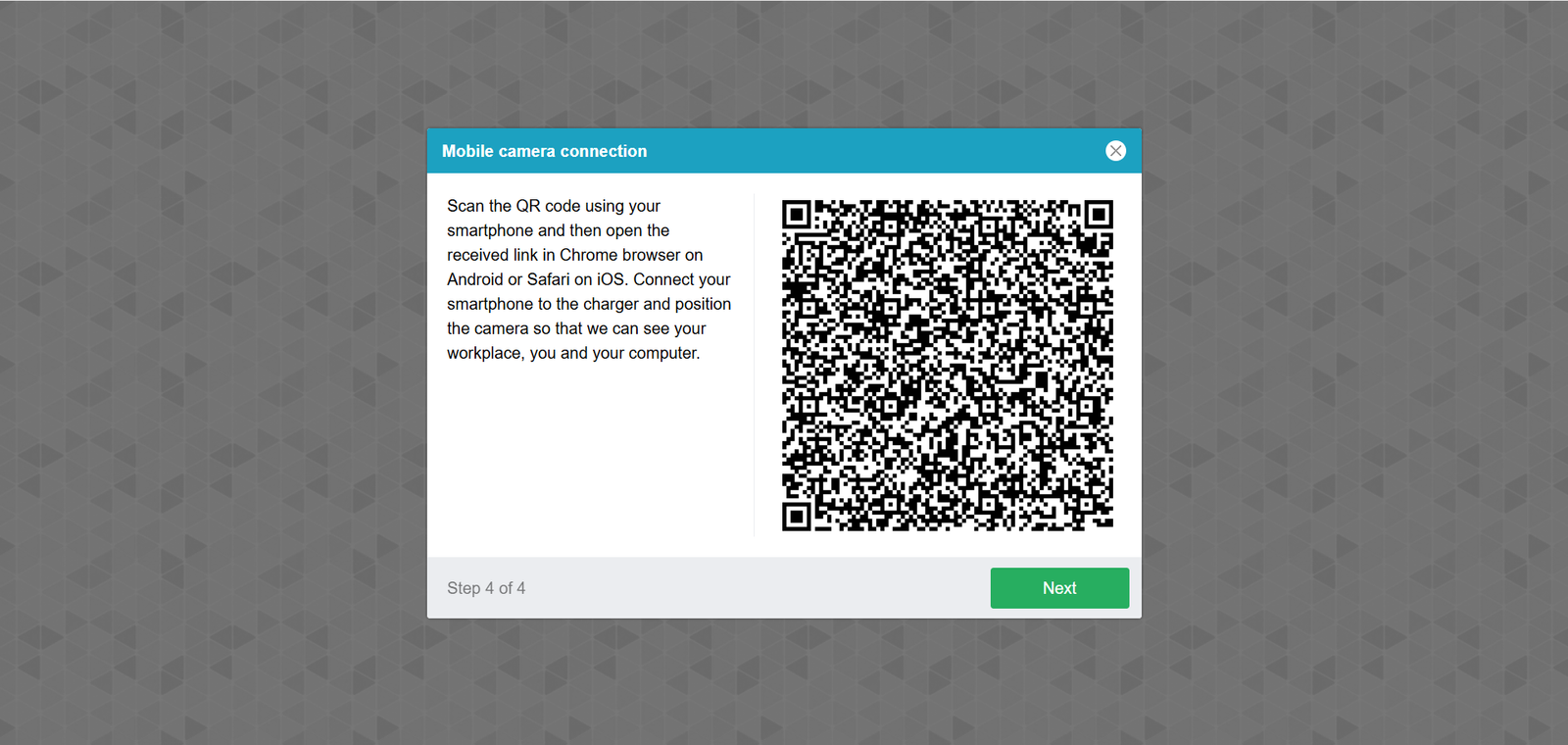 To connect the secondary camera, candidates scan the QR code displayed on their computer screen using their phone’s camera.