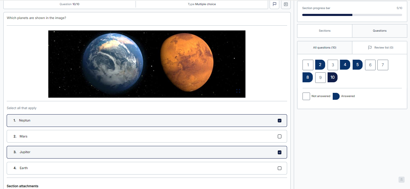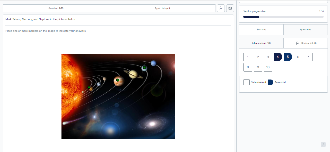 - Clear all – Clears all selected areas, allowing the candidate to start over.