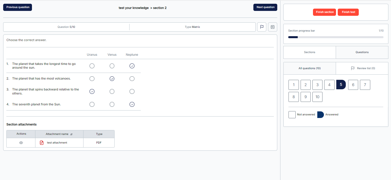 Matrix questions consist of a grid of multiple-choice questions presented in rows and columns. Each row represents a different question, while columns provide predefined answer choices.