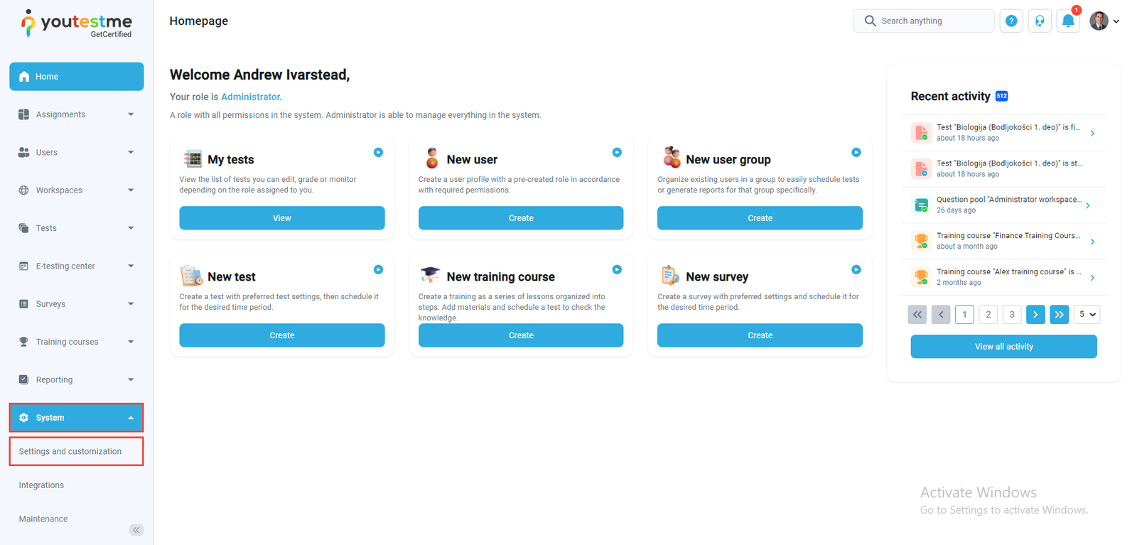 Navigate to the Settings tab in the left side menu and select the Settings and customization tab.
