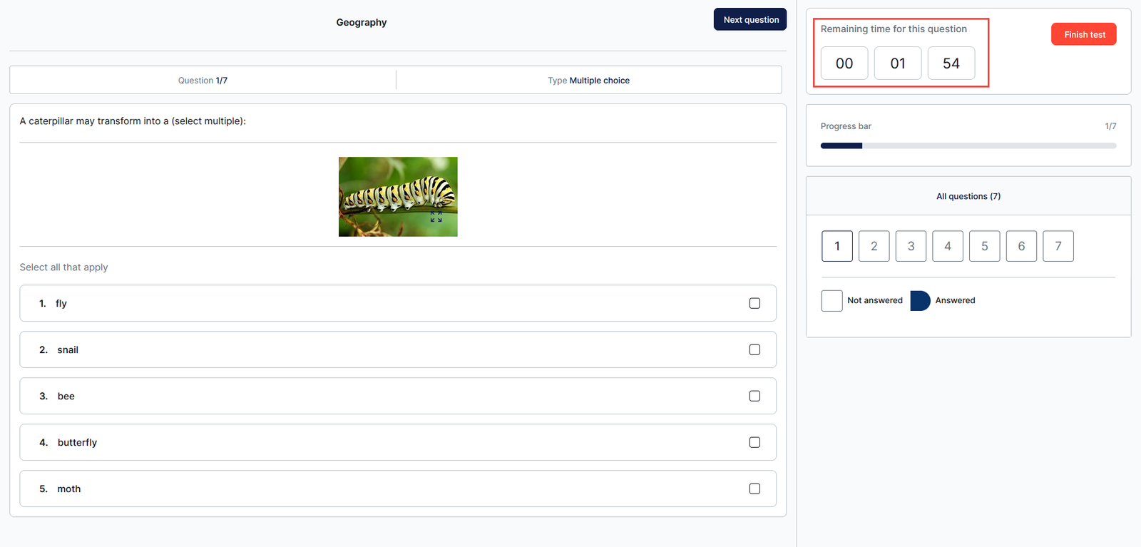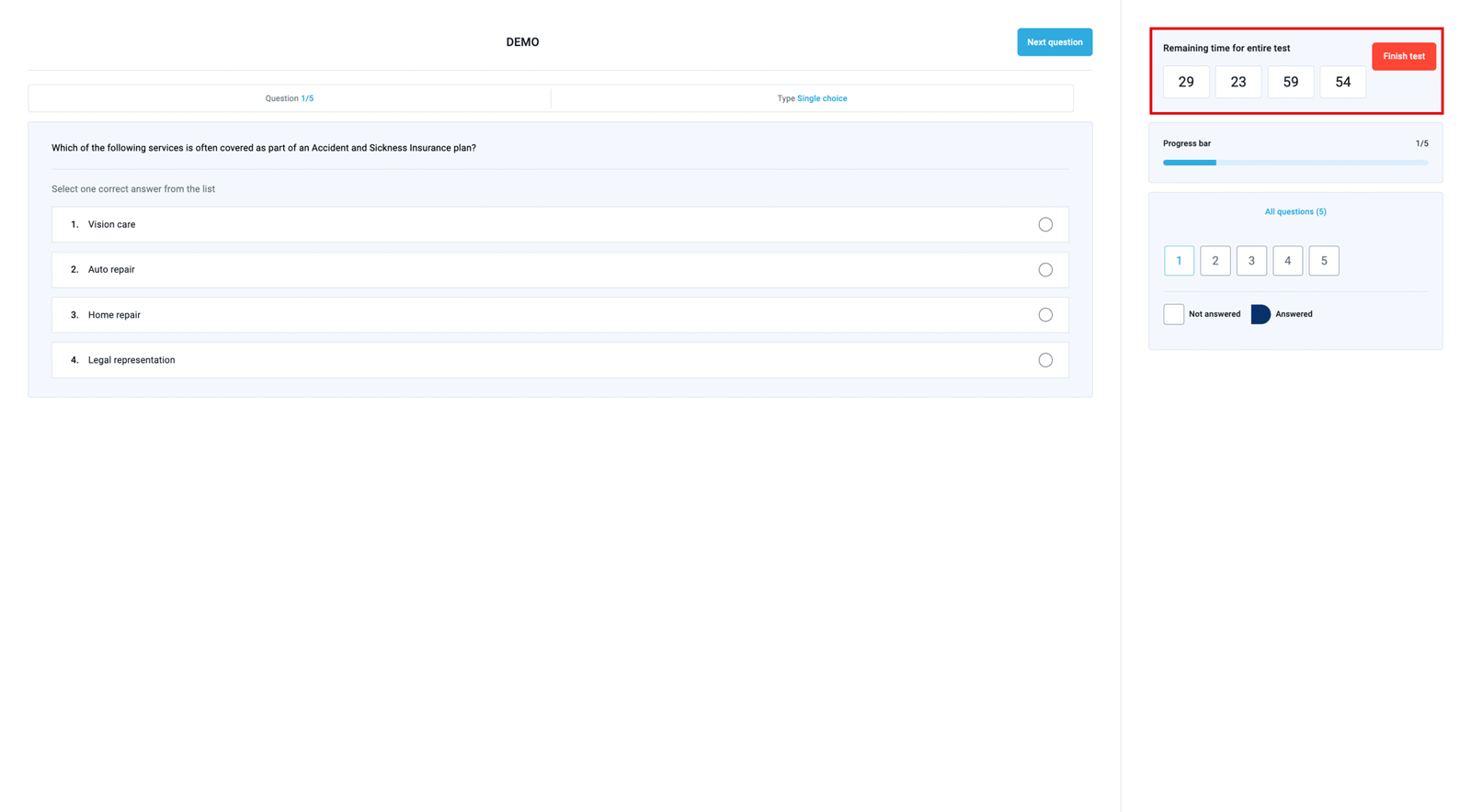 - When the timer expires, the test-taker is automatically moved to the next question.