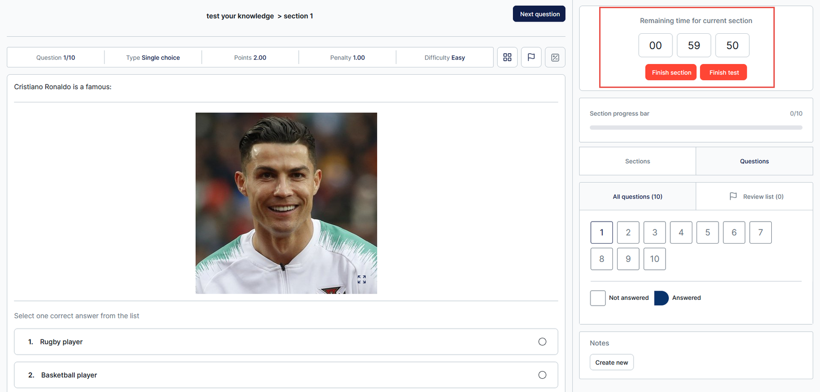- Test creators can customize navigation settings, allowing or restricting the ability to pick questions.