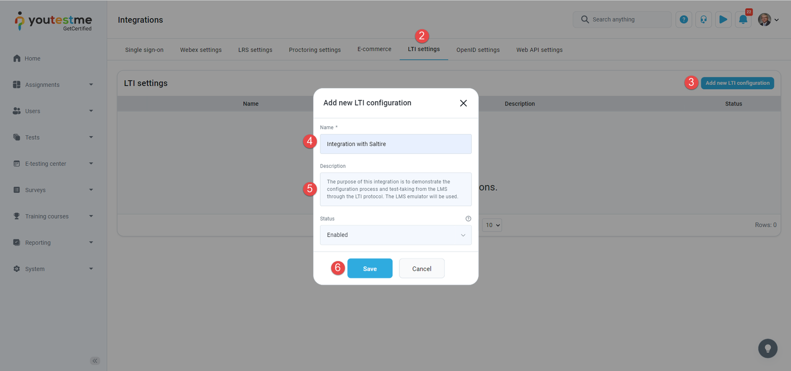 The purpose of this workflow is to demonstrate the configuration process and test-taking from the LMS through the LTI protocol. The LMS emulator will be used.