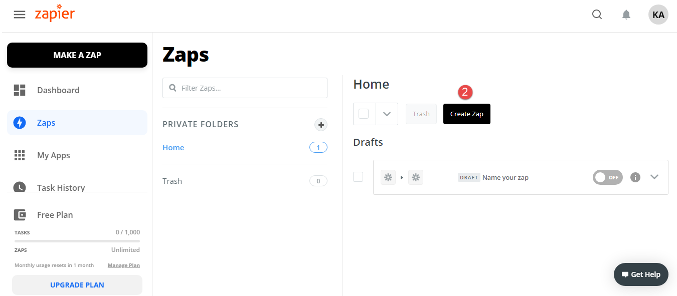 Zaps are the services that provide a connection with many different applications that have been integrated with Zapier. Setting up the Zapier integration with your chosen application is needed to create a workflow and the new Zaps.
