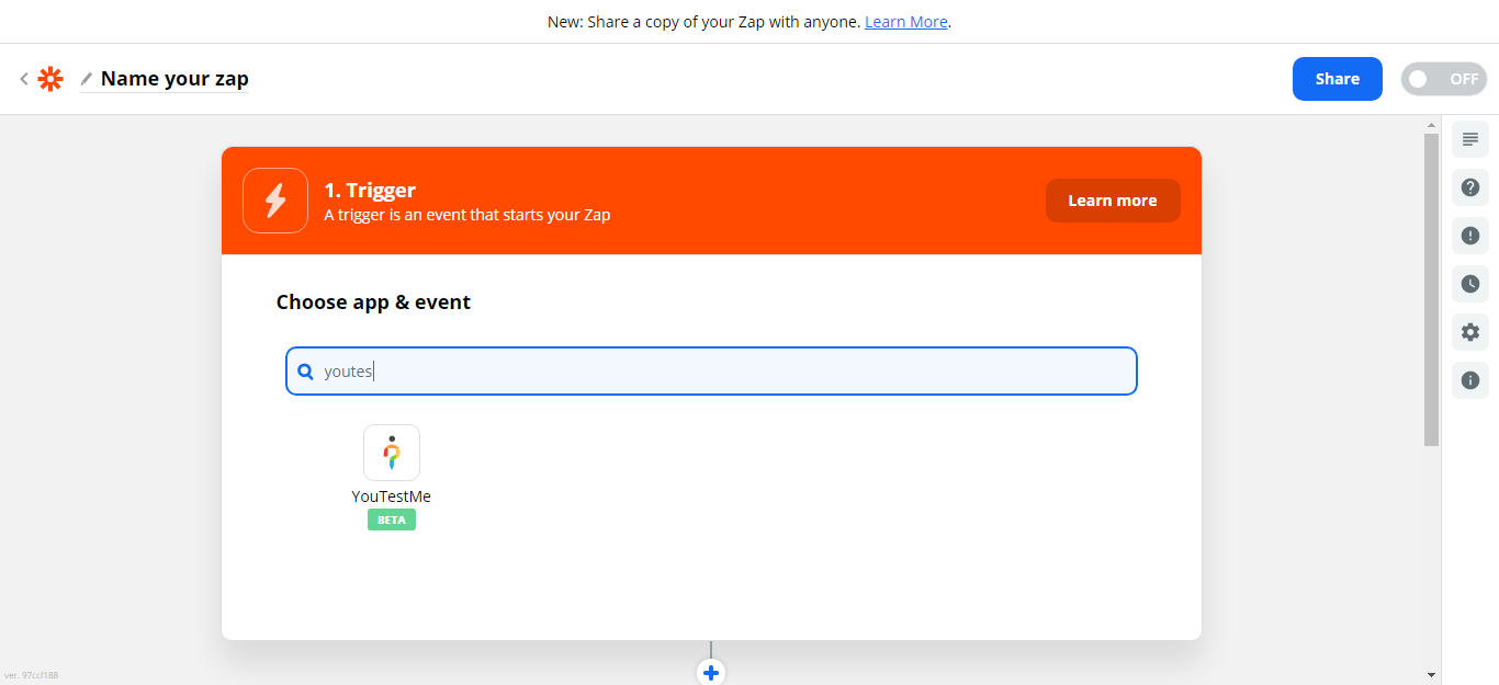 To create Zaps using the YouTestMe application, you can choose one of the integration options. You can create a Zap to perform one of the actions offered (create, update, or delete users). The most effective way to connect with the application is by using triggers.