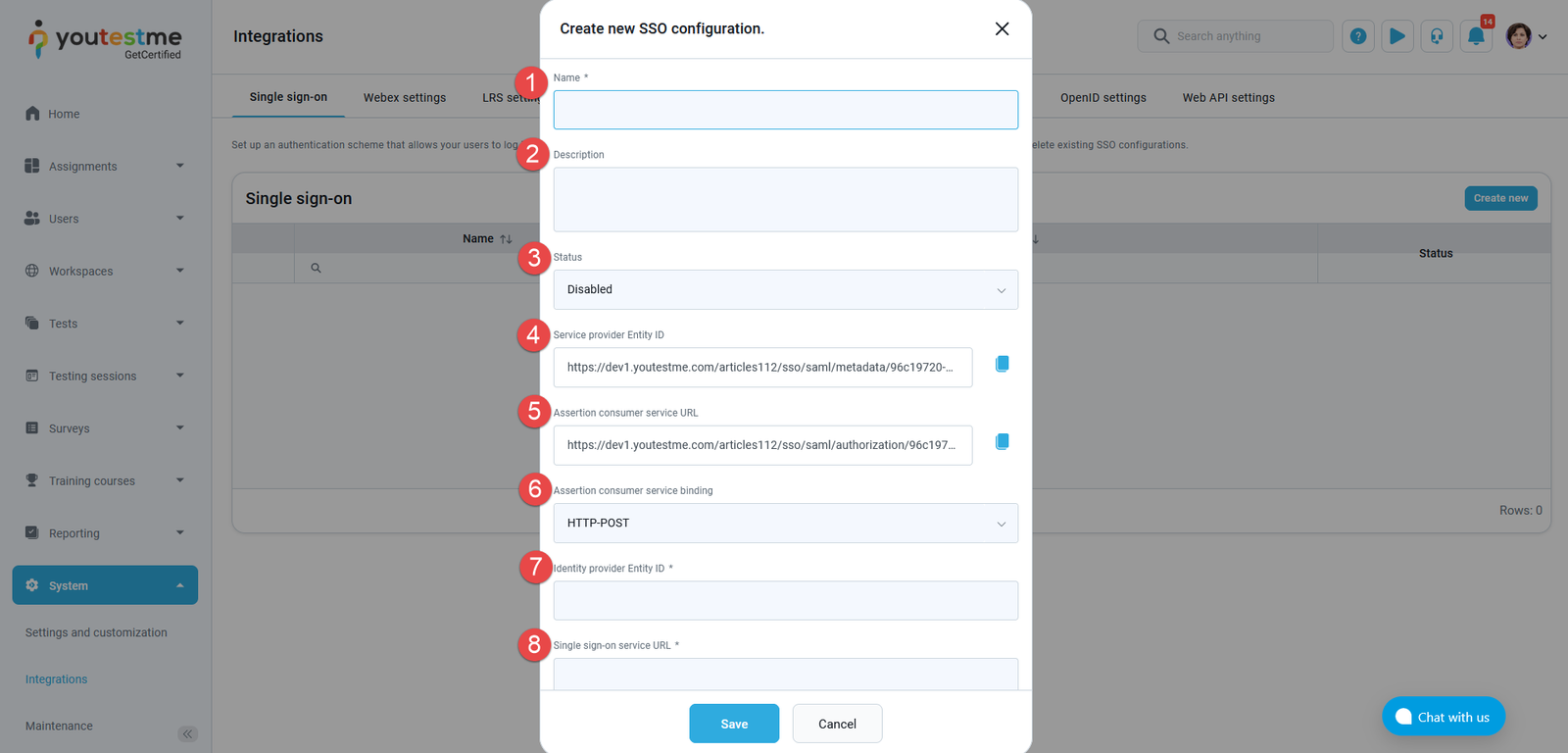 NOTE: Please contact our support team at support@youtestme.uk if you have trouble configuring your SSO.