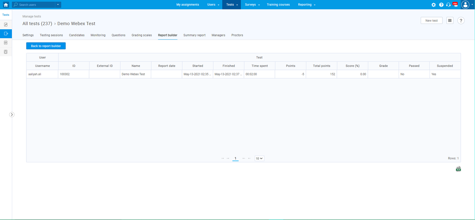 This article explains how to view suspended test attempts. Also, explains how to use the advanced search.