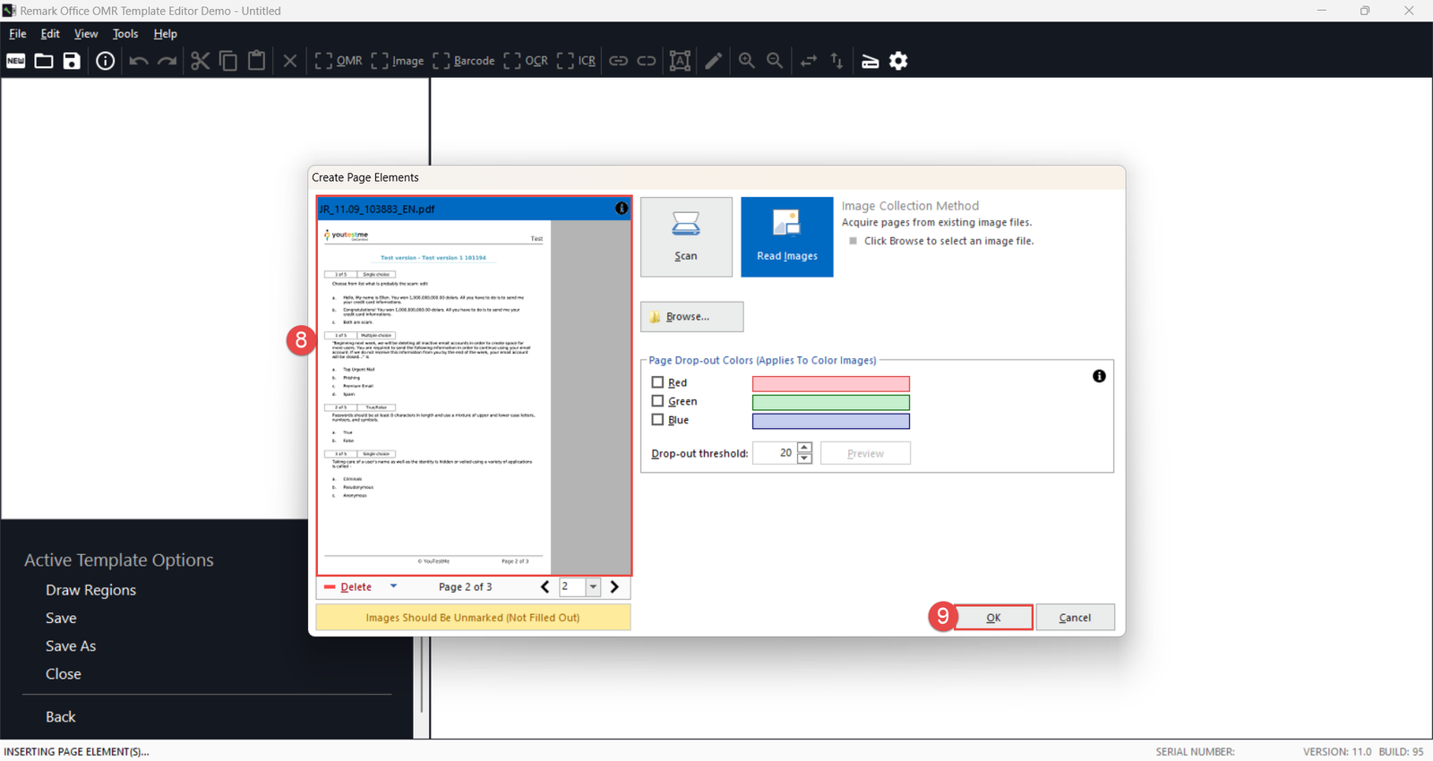 When you open the template, you gain access to a structured digital document that serves as a blueprint for collecting and processing data. The template contains predefined areas where data, such as marked check-boxes, can be recognized and interpreted. The next step is to import data to begin the reading process.