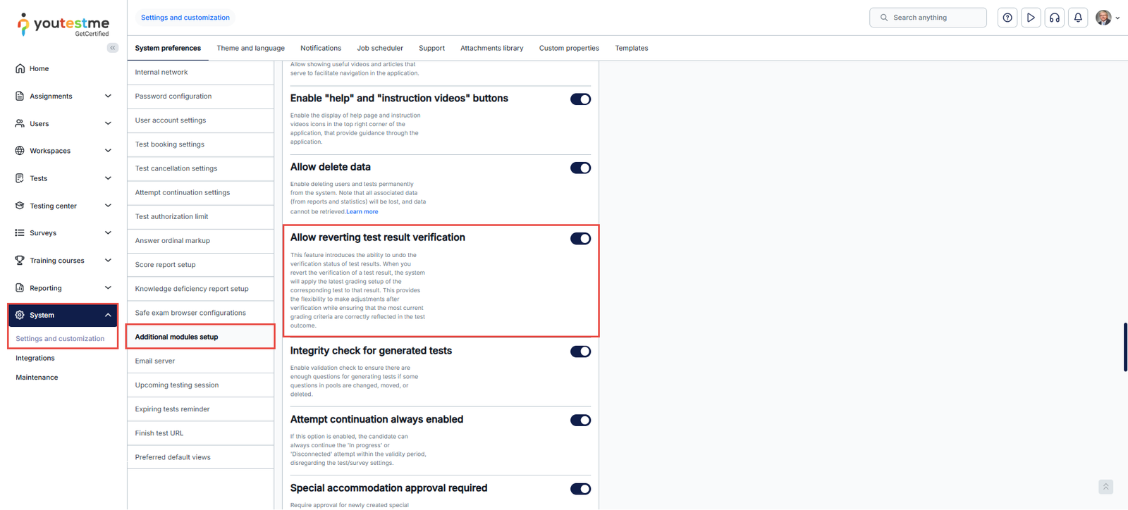 - Scroll down and enable the “Allow reverting test result verification” option.