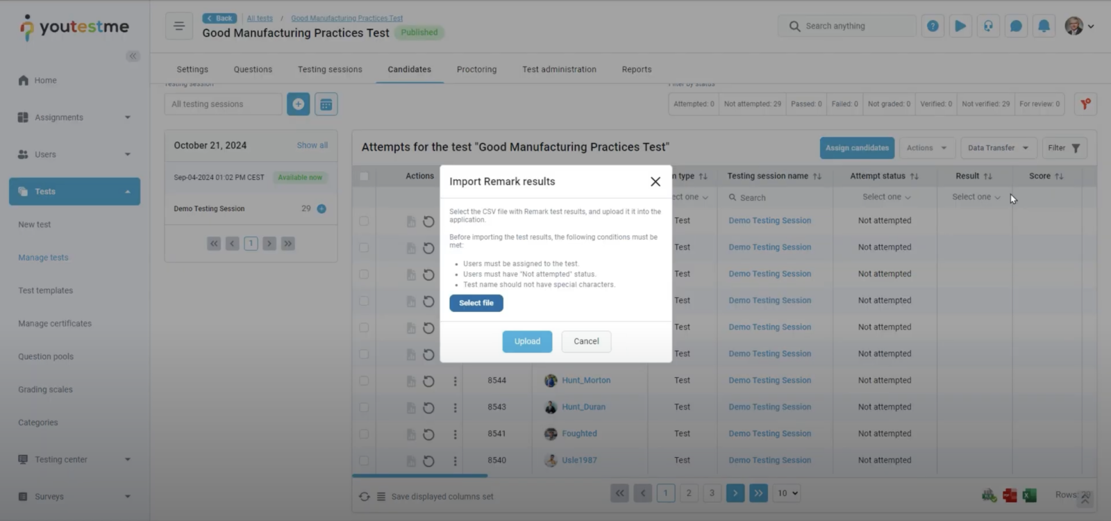 With YouTestMe, you can seamlessly blend the familiarity of traditional exams with the power of modern technology, creating a streamlined, efficient process from start to finish. Say goodbye to manual grading and distribution - you can automatically scan up to 100 test results per minute, saving countless hours and reducing human error. Whether you're administering a small exam or managing large-scale assessments with thousands of candidates, YouTestMe makes it easy to create, manage, and evaluate tests with precision and speed. Upgrade your testing process without sacrificing the integrity or reliability of the traditional approach.