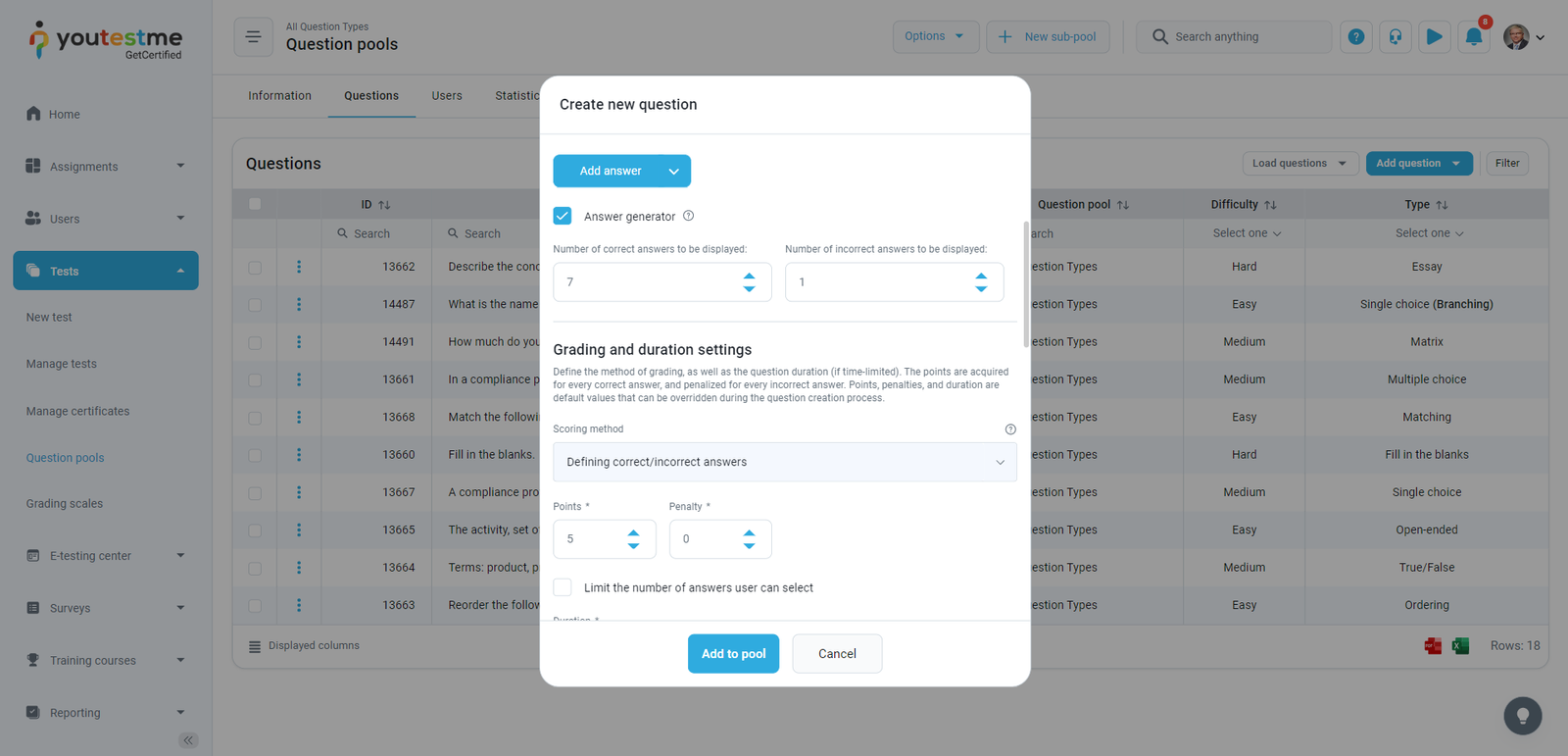 Set up hints and special assistance by dynamically adding time, or removing incorrect answers