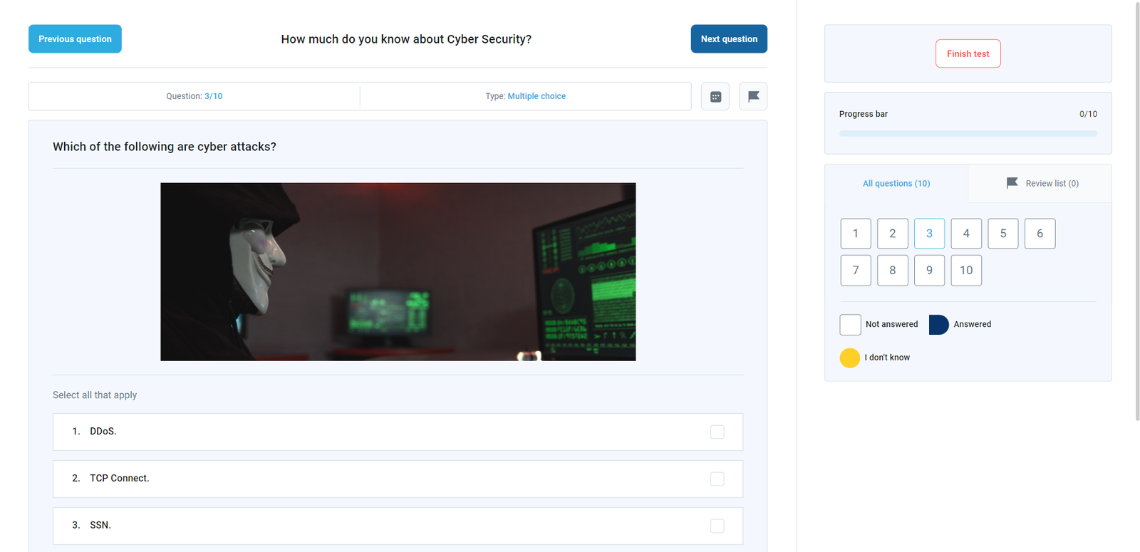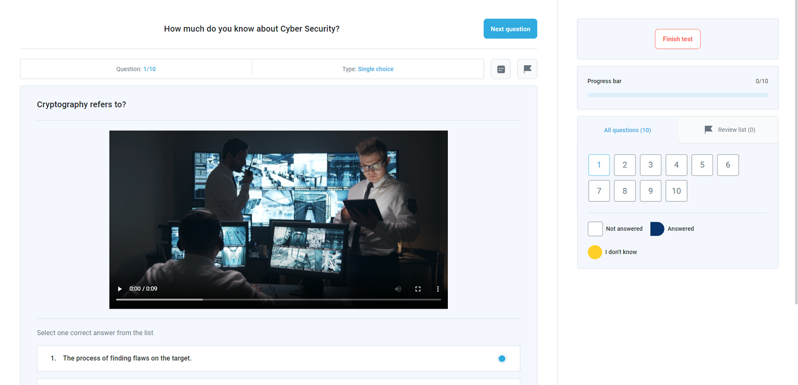 Navigate through questions (next, previous, jump) during the test without submitting the answer, with real-time grading and ability to go backward