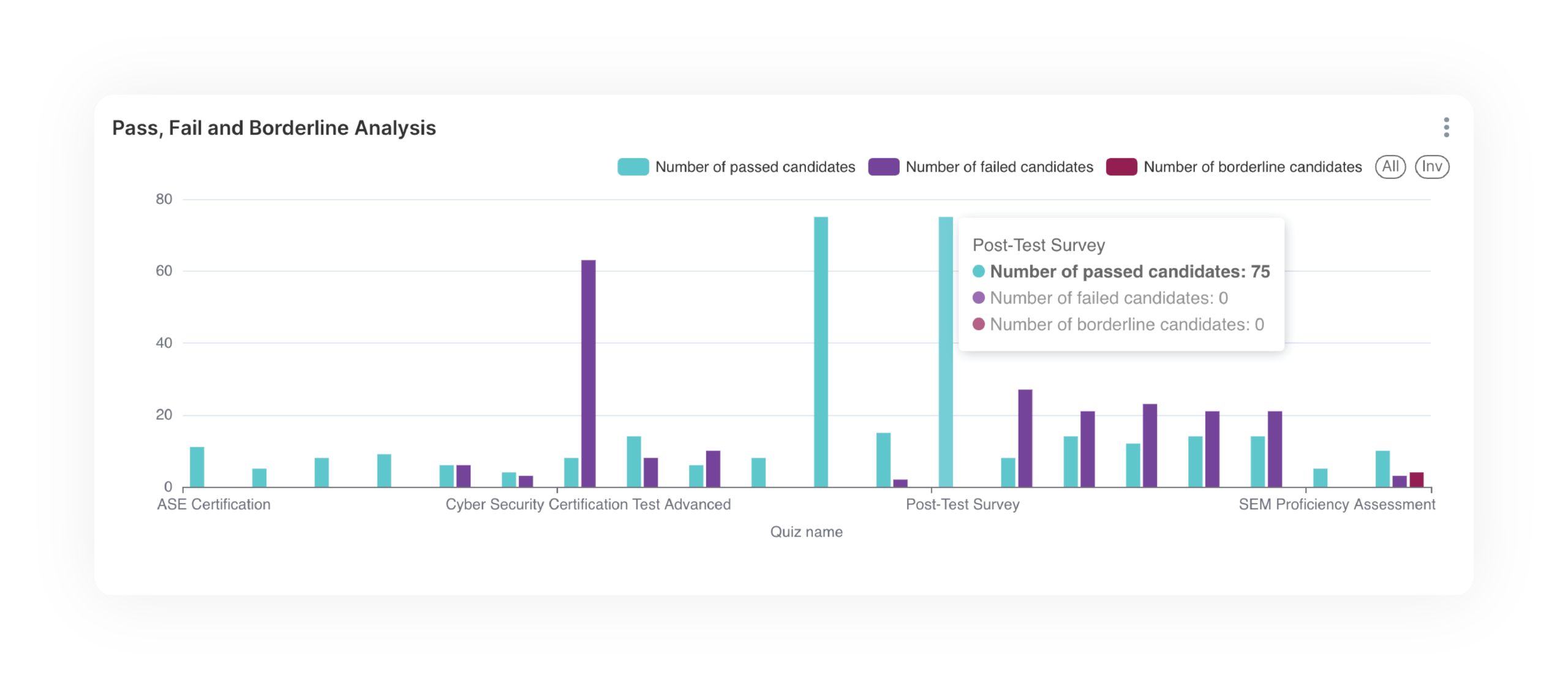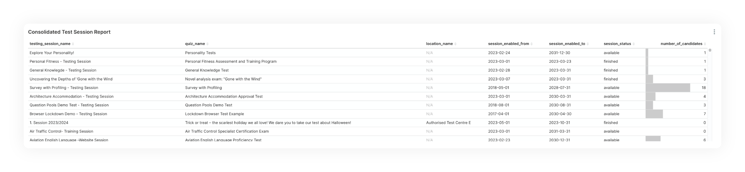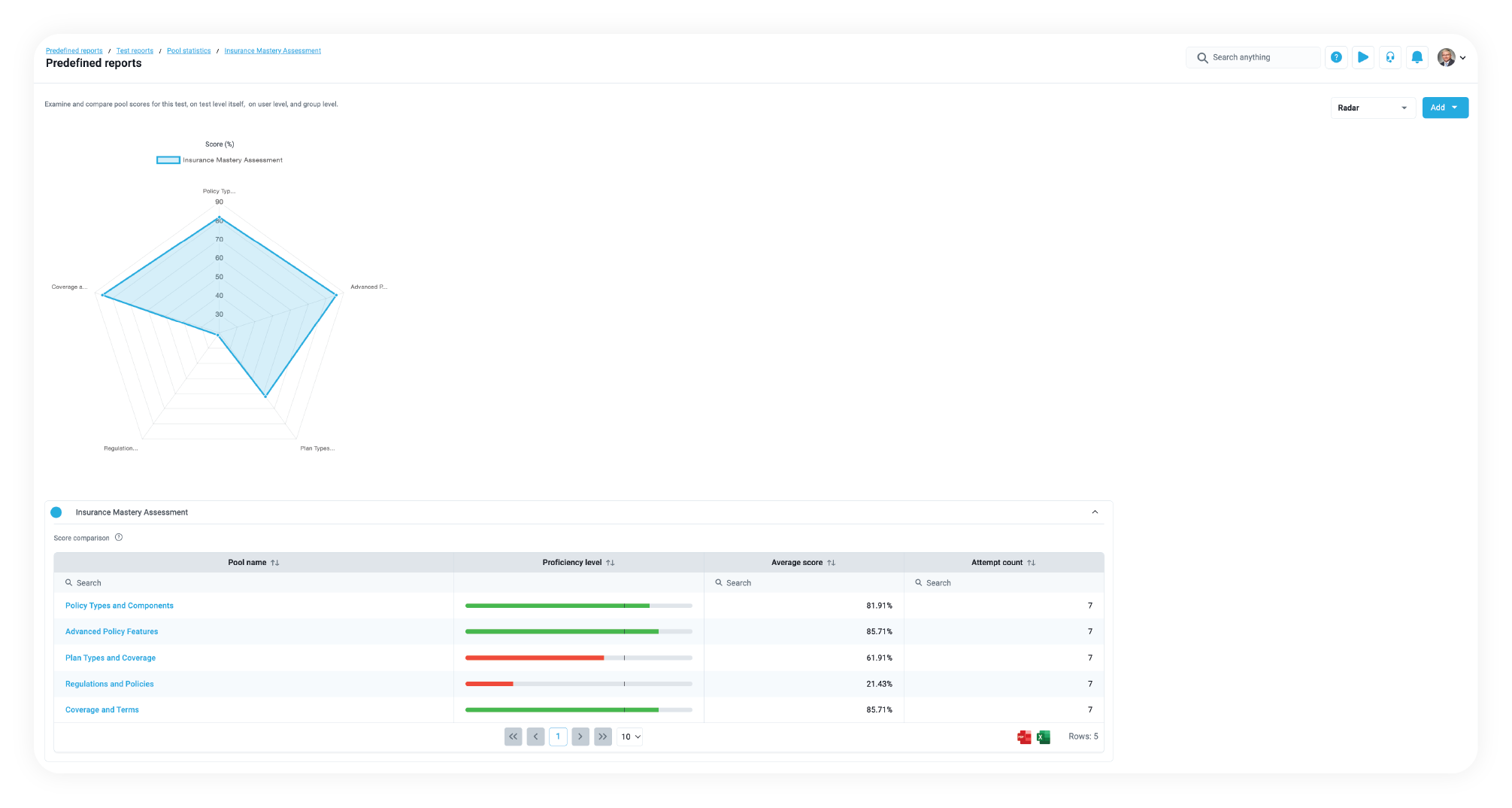 The reporting module provides over 40 types of predefined reports on users and tests and an unlimited number of custom-tailored reports generated using our Report Builder and advanced search options. Advanced analytics include results processing broken down by user groups or testing locations, test analysis and item reliability, while the delivery mode may range from in-application notifications, emails to paper reports.